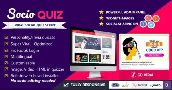 SocioQuiz сайт вирусной викторины с входом через Facebook - это скрипт веб-сайта Viral Quiz, который имеет поддержку изображений / видео и пользовательский HTML. Он имеет больше возможностей, чем викторины на Playbuzz, Buzzfeed или других сайтах.