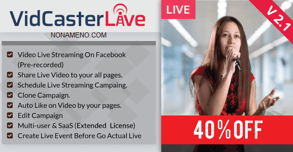 VidCasterLive скрипт стриминг Facebook - которое позволяет вам организовать стримы в Facebook с предварительно записанным видео и делиться им со всеми вашими друзьями, группами, страницами.