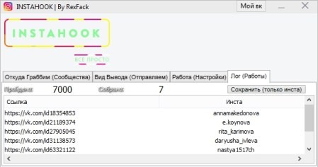 Парсер страниц Instagram с ВКонтакте программа InstaHook