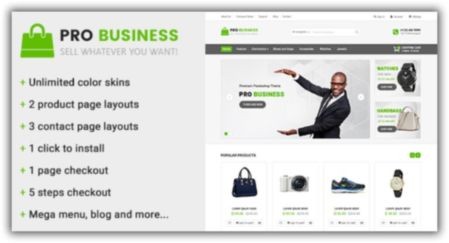 Pro Business отзывчивый шаблон Prestashop - полностью адаптивный шаблон prestashop; многоязычная поддержка; поддержка нескольких валют; 8 предустановленных цветовых скинов, поддержка пользовательских цветов