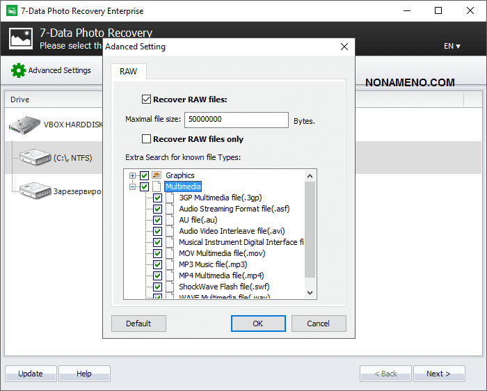 К восстановлению относятся картинки разнообразных форматов, а также PSD формат. Приложение помимо этого может отыскать и компьютерные данные 3D моделей, сделанные в приложении 3Ds MAX. Так же поддерживаются и звуковые/видеоматериалы, естественно разных форматов записи. Какие конкретно форматы поддерживаются, вы сумеете увидеть в опциях компьютерной программы.