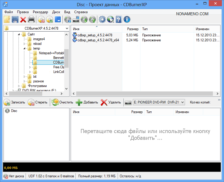 CDBurnerXP запись CD DVD Blu-Ray дисков - представленная компьютерная программа целиком и полностью бесплатная, она может записывать любые данные на диски различного вида CD, Blu-Ray и HD-DVD.