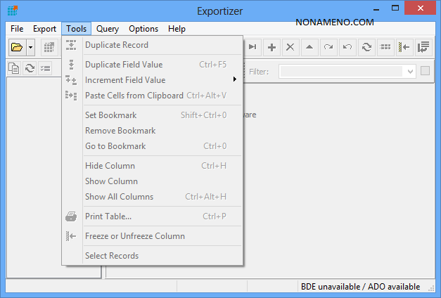 Exportizer Pro редактирование баз данных - компьютерная программа даст возможность вам просмотреть, при необходимости корректировать и сортировать, а кроме того записывать и делать экспорт БД в DB, DBF, TXT, CSV, ASC в буфер обмена, возможно записывать в файлы форматов XLS, RTF, XML, HTML, TXT.