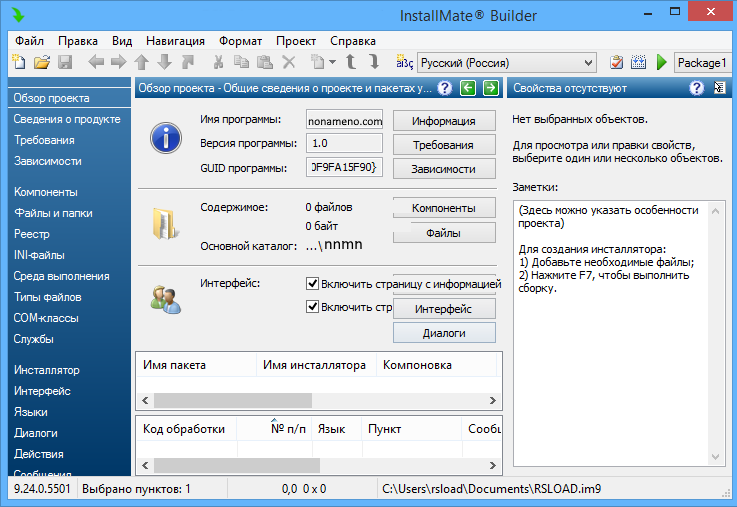 В конце старта приложения вашему вниманию предстанет интерфейс с весьма детальной настройкой собственного будущего инсталлятора, начиная от разрядности и совместимости с разнообразными платформами и завершая дизайном непосредственно инсталлятора (иконки, изображения, оповещения и другое).
