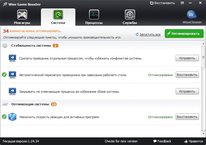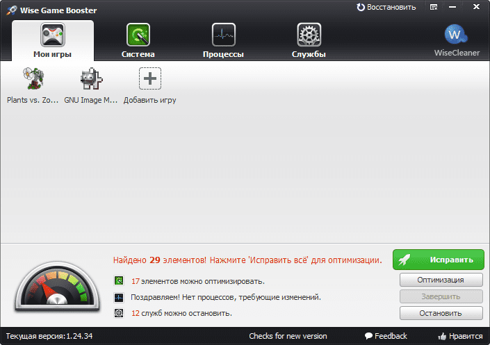 Wise Game Booster 1.5.5.79 программа оптимизации и ускорения игр