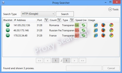 Вам остается лишь опробовать подходящие вам прокси, кликнув по соответственной иконке, перебрать их по быстроте и найти пригодные