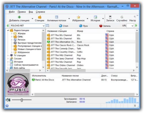 Программа RarmaRadio предлагает вам довольно большое количество различных возможностей, также вы получите приятный интерфейс, дополнительно можно осуществлять запись проигрываемой станции, вы сможете вбить композицию, при проигрывании которой запись начнется автоматически, это очень удобно. RarmaRadio имеет гибкую систему поиска нужной вам станции, при желании если не найдете нужную, можно добавить свою.