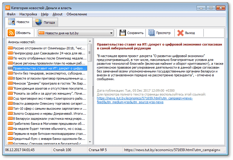 RSSreader чтение rss каналов - небольшая программа, которая предназначена для просмотра популярных новостных RSS каналов, а также сводок погоды в формате RSS (только gismeteo.ru).