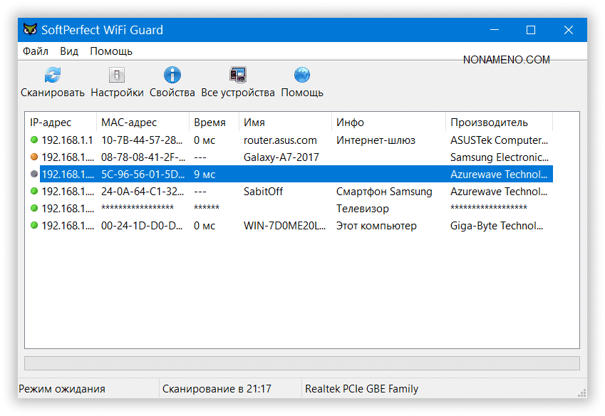 SoftPerfect WiFi Guard контроль подключений по Wi-Fi