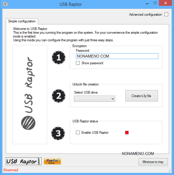Компьютер будет разблокирован автоматически, вам нужно просто вставить флэш-накопитель. Можно задать мастер-ключ, чтобы открыть программу могли только вы. USB Raptor предлагает и альтернативные методы разблокировки, на случай если вы потеряли флешку.