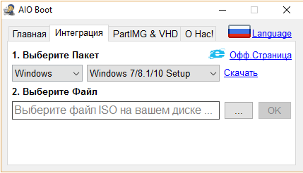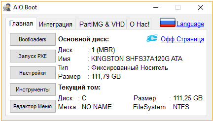 AIO Boot программа создания загрузочных дисков - данное приложение даст возможность тертым пользователям сделать загрузочный носитель на любом накопителе либо жестком диске с Grub2, Grub4dos, Syslinux, Clover и rEFInd, дополнительно в то место сможете интегрировать наборы обновлений.