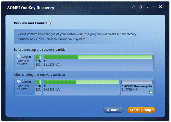 AOMEI OneKey Recovery программа создания бэкапа - удобная утилита для создания резервной копии системы Windows, конечно она умеет также и восстанавливать эти копии. Теперь переживать за сбои Windows больше не стоит, у вас всегда будет копия, которую легко восстановить.