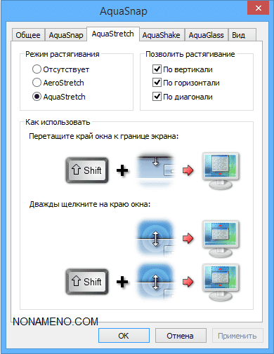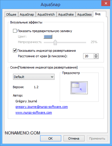 Существует фишка под именем AutoGlass - применяя ее вы можете произвести настройку прозрачности окошек, это достаточно практично и эффектно выглядит. В целом потенциала у AquaSnap достаточно, к примеру вы можете сменить внешность окон, сильная сторона программы практически не потребляются системные ресурсы персонального компьютера, к тому же есть переносная версия, каковой довольно легко пользоваться и она работает с различных носителей.