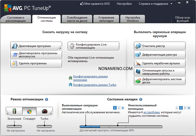 AVG PC Tuneup Pro оптимизация windows - представленная программа дает возможность оптимизировать персональный компьютер, следовательно не только лишь ваша ОС и также поставленные игрушки и программы которые будут работать на полной мощности, опробовать сможете самостоятельно, скачать программу AVG PC Tuneup можно внизу страницы.