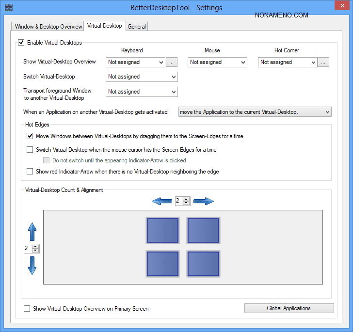 Кроме того, программа BetterDesktopTool обеспечивает работоспособность с многими виртуальными столами, каждый может иметь личные опции, что весьма практично.
