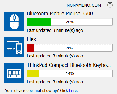 После быстрой инсталляции вы сможете заполучить доступ к приложению из панели задач. Интерфейс простой и легкий. Отталкиваясь от численности совместимых с Bluetooth устройств, вы сможете заранее проконтролировать порог заряда батареи для всех без исключения устройств, нажав на небольшую иконочку.