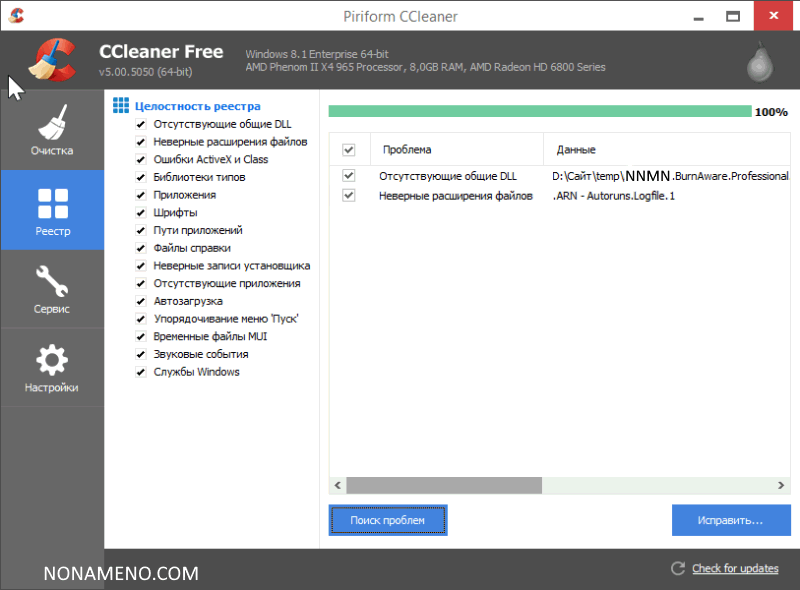 Интегрированный в программное обеспечение чистильщик реестра даёт возможность выполнять проверку, обнаруживать проблемки и находя не применяемые записи. Стираются не применяемые расширения файлов, компоненты управления ActiveX, ClassID, ProgID, единые библиотеки DLL, ссылочки на стертые из ОС шрифты, данные справки, иконки, неправильные ярлычки и другое.