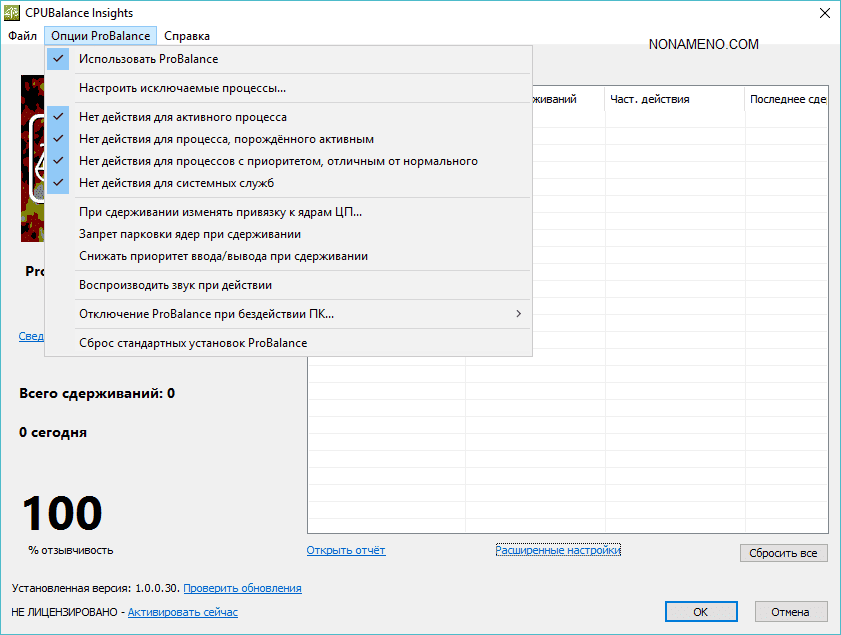 Программа применяет фирменную технологию ProBalance, она позволяет не только мониторить, но и предотвращает запуск ненужных процессов. Можно приложению указывать какие процессы необходимо исключить, а каким изменить привязку к ядрам процессора.