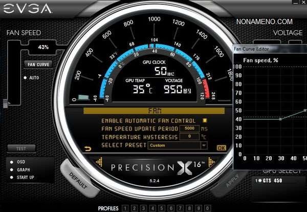 Программа EVGA Precision XOC умеет изменять частоту памяти и ядра, а также настроить на автоматический режим скорость вращения кулера для сбалансированного охлаждения видеокарты.