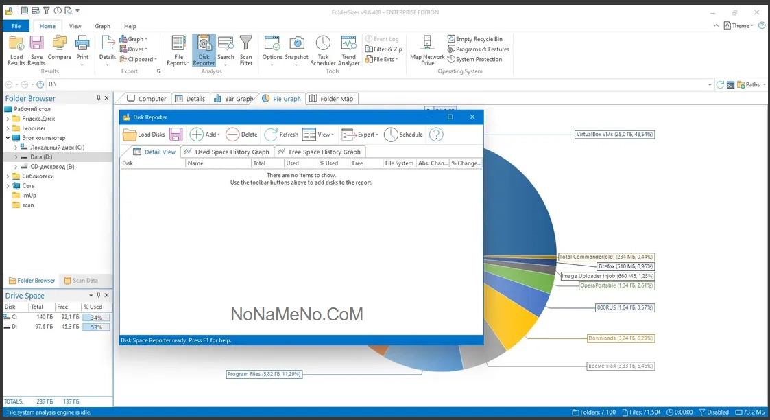 Вы когда-нибудь замечали, что на жёстком диске загадочным образом заканчивается место? Вроде бы ничего крупного не устанавливали, а свободные гигабайты тают на глазах. FolderSizes Enterprise — это программа, которая словно просвечивает ваш диск рентгеном и показывает, куда именно ушло пространство. Причём делает это очень наглядно: с помощью цветных диаграмм, круговых графиков и интерактивных «тепловых карт» (технология TreeMap).