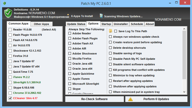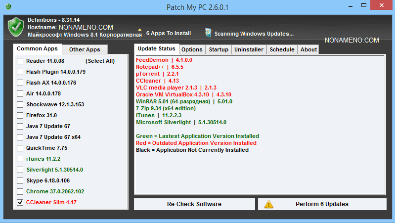 Patch My PC обновление программ - способна быстро проверить установленные в системе программы на наличие вышедших для них обновлений. Можно установить в систему целый набор дополнительных программ.
