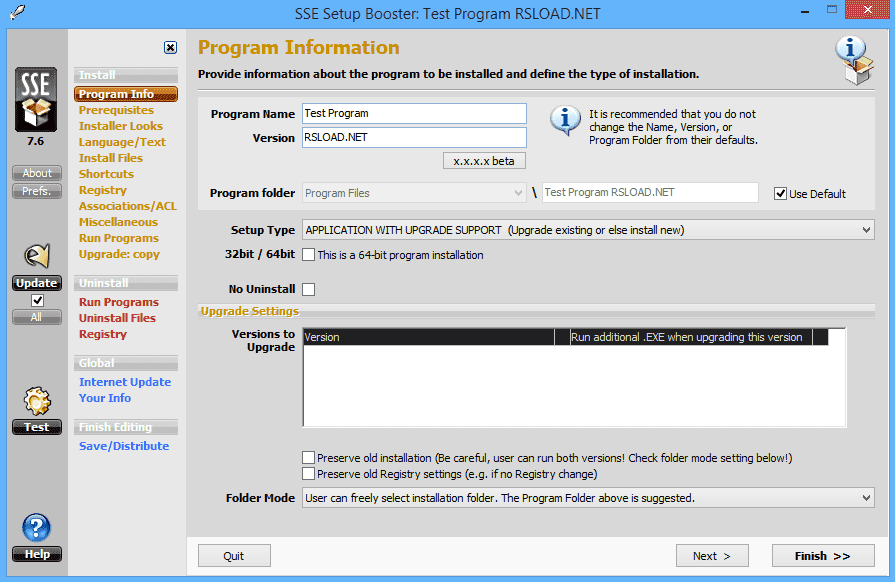 Создание инсталлятора в SSE Setup, похоже аналогичному процессу как в Inno Setup, но функции по расширенной настройке будущего исталлятора гордаздо более разнообразны. Язык сценариев прост и не так запутан, как в других аналогах.