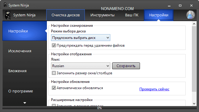 System Ninja 3.2.5 чистка компьютера оптимизация windows