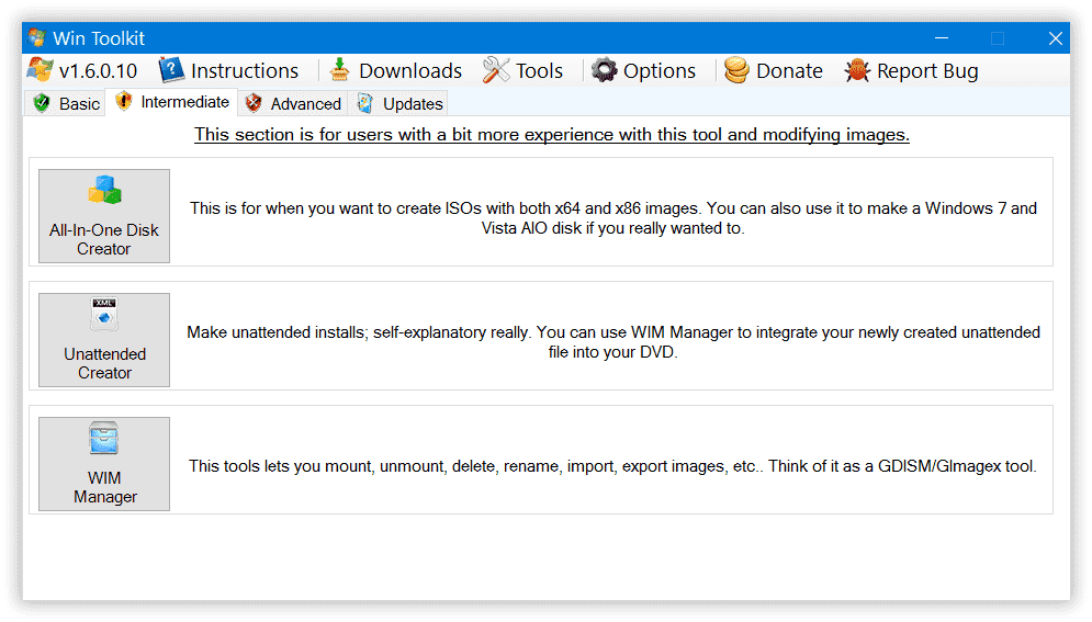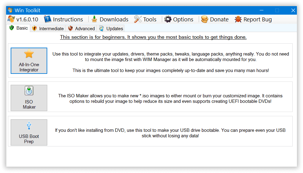 Win Toolkit 1.6.0.10 Stable работа с образами Windows