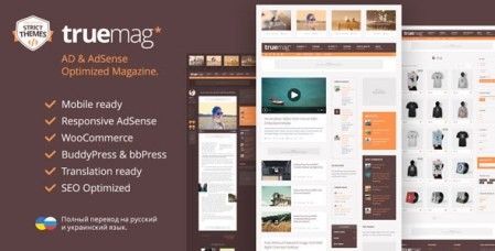 Truemag адаптивный отзывчивый шаблон wordpress - одна из лучших тем для издателей и продавцов, предназначенная для монетизации в нескольких потоках доходов с рекламными блоками Google AdSense гарантируют правильное отображение объявлений на всех устройствах и размерах экрана.