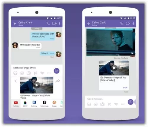 Самым главным нововведением разработчики называют интеграцию YouTube с чатами Viber. Ссылки на видеоролики YouTube являются одной из самых популярных форм контента, пересылаемого пользователями Viber.