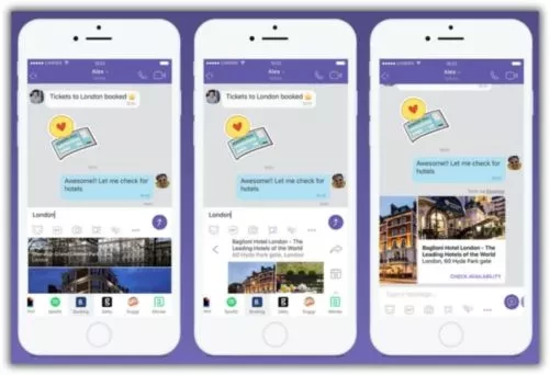 С помощью расширений для чатов более 800 миллионов пользователей Viber могут искать и делиться контентом и сервисами других компаний, не покидая окно чата. С последним обновлением разработчики расширили количество крупных сервисов, интегрированных в Viber.
