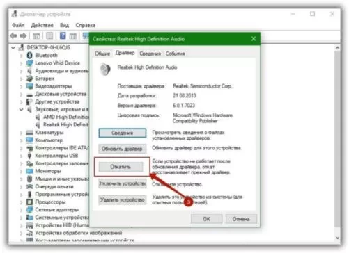 Откат драйвера в Windows 10.