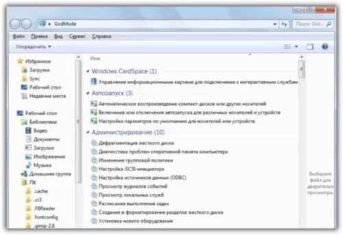 «GodMode» является функцией Windows 7, которая предоставляет доступ к большинству настроек системы из одного окна, откуда пользователь может производить управление различными опциями и процессами на компьютере.