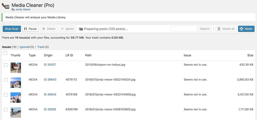Плагин Media Cleaner Pro проводит проверку и выявляет фактическую привязку файлов: конкретно документ закреплен к медиатеке WP, используется ли файл в ваших записях, медиафайл эксплуатируется в случайном поле сообщения, документ эксплуатируется в WP, в галерее сообщений, у ретина медиафайлов (под экраны ретина) имеется обыкновенный файл (без префикса @2x).