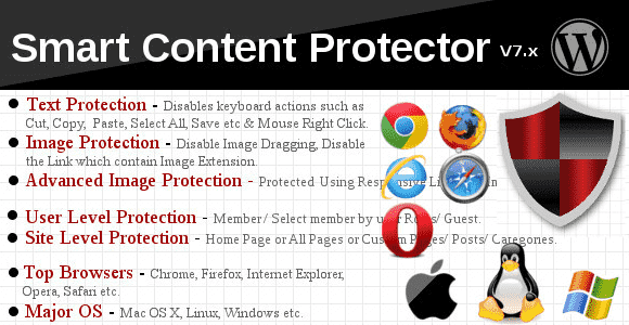 Smart Content Protector защита контента плагин wordpress - для охраны текстов и рисунков на любом вашем интернет-сайте. Для того чтобы исключить плагиат, нужно удостовериться, что контент и картинки со вашего интернет-ресурса не воруются.