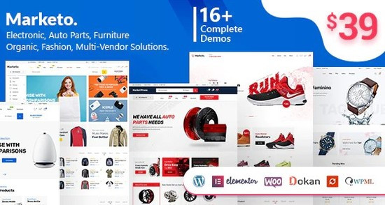 Тема Marketo дополнительно совместима с плагином Dokan, дающий возможность формировать торговые платформы с различными торговцами с поддержкой WooCommerce. Сделайте собственный магазин на подобии Amazon, Shopify, eBay, Magento всего-навсего за тридцать минут. Зарабатывайте посредством комиссионных с продажи всех видов товаров.